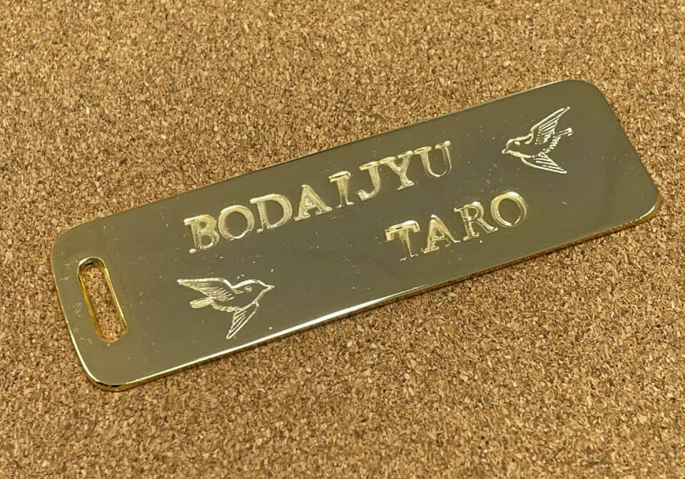 純金(24K)でメッキコーテイングしてあり、高級感にあふれたネームプレート。